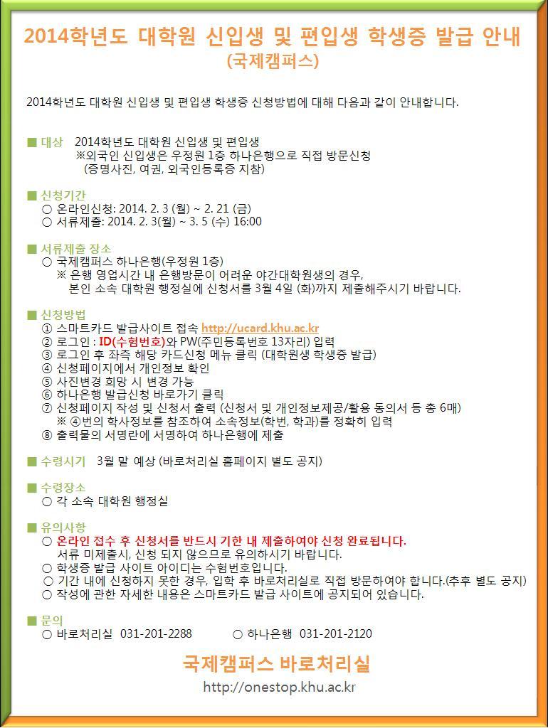 2014Çг⵵ ´ëÇпø ½ÅÀÔ»ý ÇлýÁõ ¹ß±Þ ÀÏÁ¤ÀÌ È®Á¤µÇ¾î ¾È³» µå¸³´Ï´Ù.